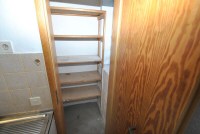 * Büro/Lagerraum mit kleinem Abstellraum, Regalen, Schreibtisch und Spülschrank